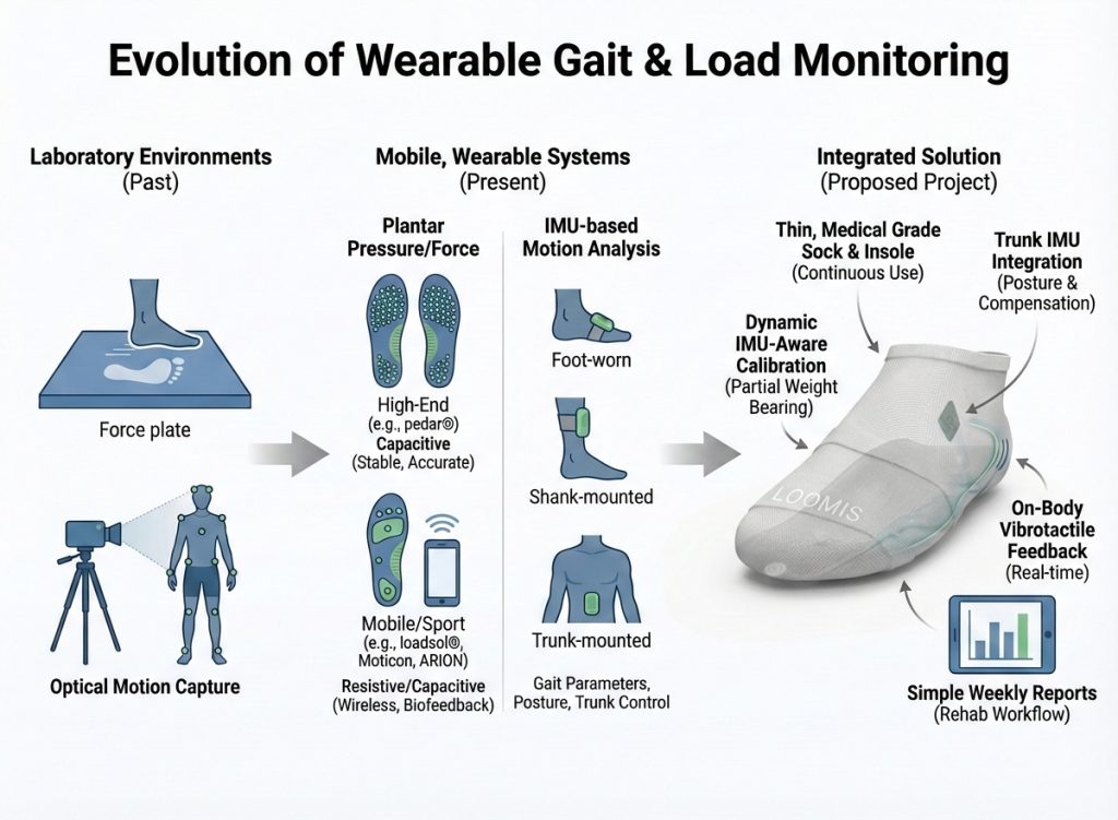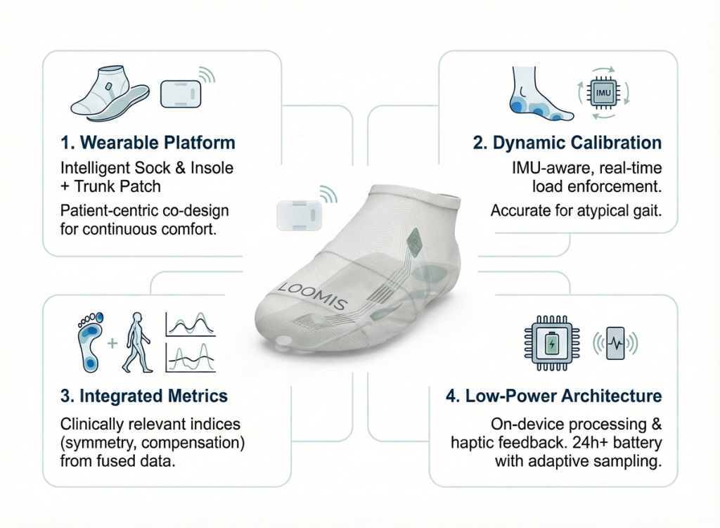 LOOMIS introduces an integrated, medical-grade sock and insole system with dynamic calibration and trunk integration, enabling continuous gait and posture assessment in daily life and rehabilitation workflows.